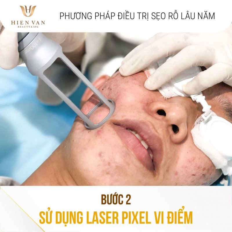 Sau khi thực hiện bóc tách chân sẹo, Phòng Khám Da Liễu HHV Clinic sẽ tiến hành phương pháp Laser Pixel nhằm thúc đẩy tăng sinh collagen, elastin giúp sẹo đầy lên tốt nhất và thời gian hồi phục nhanh chóng. Sau bước này sẽ sử dụng tế bào gốc nhằm tái tạo nhanh hơn.