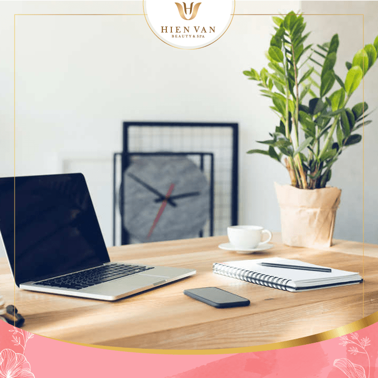 – Đặt một chậu cây ở bàn làm việc: Bạn có thể chọn xương rồng, trầu bà, trường sinh… để vừa thanh lọc không khí, vừa hút đi chất độc hại, giảm tác hại của tia bức xạ từ máy tính.